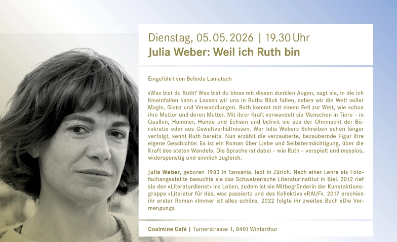 Julia Weber: Weil ich Ruth bin Coalmine, Turnerstrasse 1, 8400 Winterthur Tickets