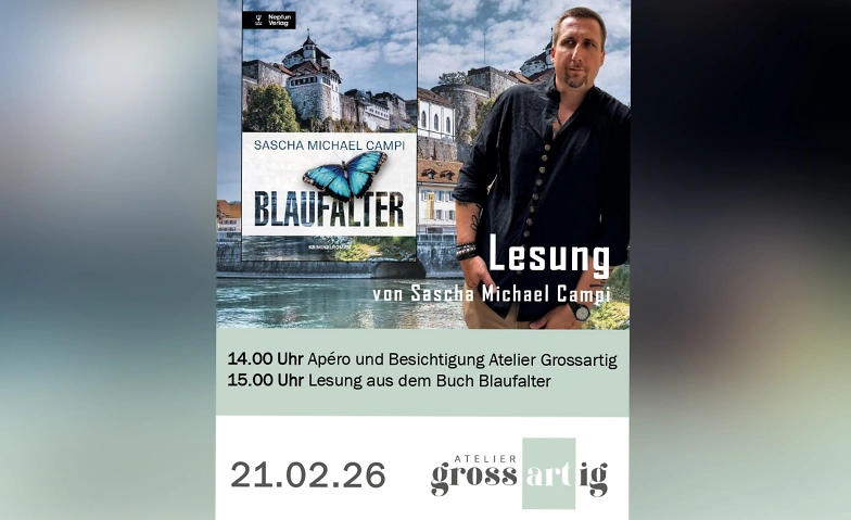 Lesung von Sascha Michael Campi aus dem Krimi "Blaufalter" Atelier grossartig, Hauptstrasse 3, 5013 Niedergösgen Tickets