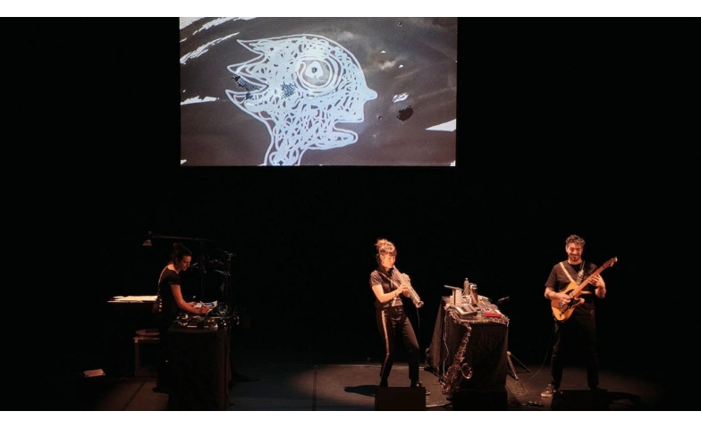«Mitternacht» ist ein hybrides Musiktheaterstück, ein genreübergreifendes Konzert, das mit Zeichnen und Objektmanipulation bereichert wird. Mit einer von Jazz und Elektro beeinflussten Musik und Illustrationen in Echtzeit erschaffen zwei Musiker:innen und eine Illustratorin ein traumhaftes Universum in schwarz und weiss. Gemeinsam mit dem Publikum begeben sie sich auf eine fantastische Reise, um die innere Dualität des menschlichen Wesens zu erforschen und Akzeptanz für die eigenen Schattenseiten zu finden.