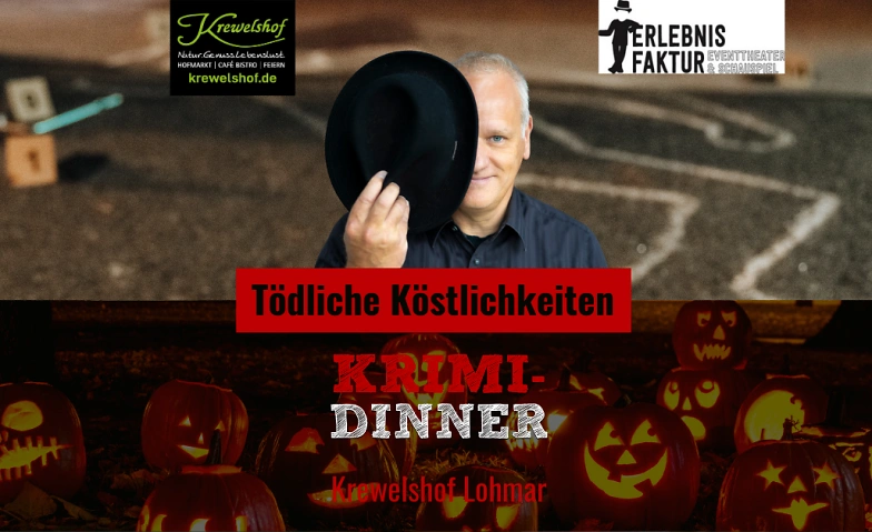 Am Freitag, den 14. November 2025, lädt Dich der Krewelshof Lohmar (zwischen Köln & Bonn) zu einem außergewöhnlichen Krimi Dinner ein. Gemeinsam mit der Erlebnisfaktur erlebst Du eine festliche Theater-Inszenierung voller Spannung, Humor und weihnachtlichem Flair – begleitet von einem köstlichen Willkommensdrink zur Begrüßung.