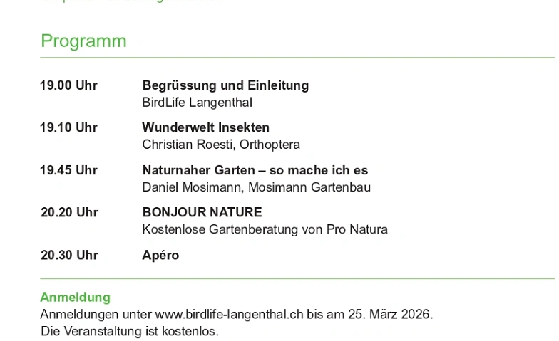 Öffentl. Vorträge: Insektenvielfalt dank natürlichen Gärten