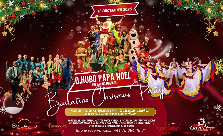 Die Bailatino Christmas Party ist ein festlicher Treffpunkt für Familien, Tanzbegeisterte und die lateinamerikanische Community in Zürich. Ein vielseitiges Programm voller Musik, Showacts, Tradition und warmem Weihnachtsflair wartet auf Sie – perfekt zum Feiern, Essen und Tanzen.
