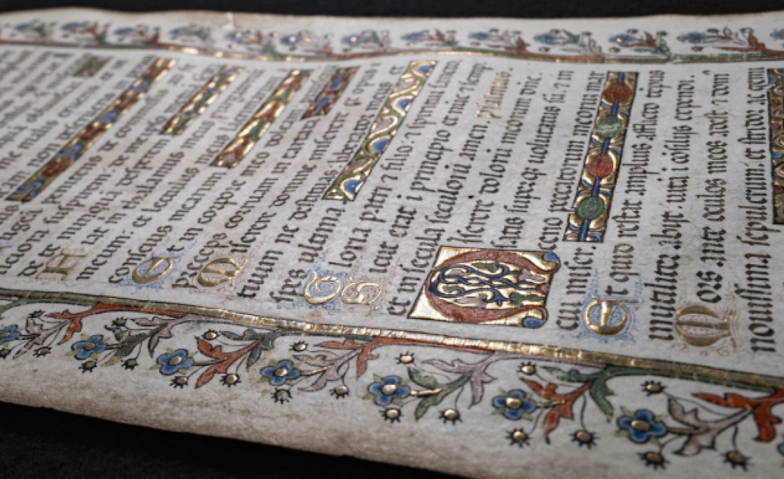 Im Besitz der Korporation Luzern befindet sich eine ganz besondere Handschrift aus dem 14. Jahrhundert. Statt als Buch wurde der Text auf einem langen Pergamentstreifen geschrieben und reich verziert – ein Auftragswerk für die Mailänder Herrscherfamilie Visconti. Der Inhalt steht in auffälligem Kontrast zur prunkvollen Inszenierung: Es handelt sich um die Busspsalmen des toskanischen Intellektuellen Francesco Petrarca (1304–1374).