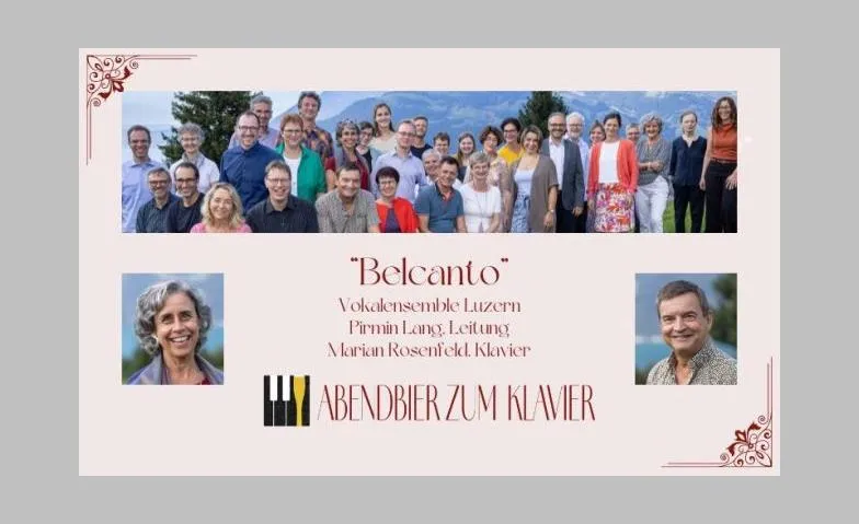 ABENDBIER ZUM KLAVIER «Belcanto» Singen mit Stimme und Tasten VOKALENSEMBLE LUZERN, Gesang PIRMIN LANG, Leitung MARIAN ROSENFELD, Klavier SCHLIEREN Pfarreizentrum St. Josef | MI 18. März | 18:30 ROTKREUZ Dorfmattsaal | DO 19. März | 18:30 Belcanto Mal gesungen, mal gespielt: ein Abend wunderbar arrangiert! Belcanto – das ist mehr als nur ein Gesangsstil. Belcanto ist Leichtigkeit und Ausdruckskraft, die auch das Klavierspiel vieler grosser Pianisten prägt. Das Vokalensemble Luzern widmet sich der Eleganz und Virtuosität Gioachino Rossinis – mit und ohne Klavierbegleitung. Dazwischen erklingen Solowerke, interpretiert von Marian Rosenfeld, deren Spiel die lyrischen Qualitäten des Instruments in den Mittelpunkt stellt. Sie hören u.a. Werke von Rossini, Puccini, Verdi, Respighi & Liszt. Das Vokalensemble Luzern ist ein engagierter Luzerner Laienchor. Unter der Leitung von Pirmin Lang, überzeugt er durch musikalische Neugier, stilistische Offenheit und präzise Gestaltung. Die Konzertreihe «Abendbier zum Klavier» wird vom Verein «Klassik und Kultur für einen lebendigen Alltag» veranstaltet. Leitung: Marian Rosenfeld Solist: VOKALENSEMBLE LUZERN, Gesang PIRMIN LANG, Leitung MARIAN ROSENFELD, Klavier