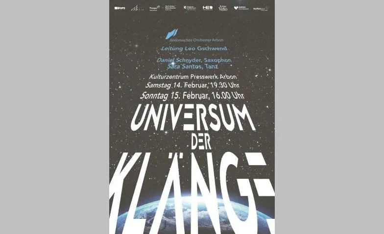 Ein Universum der Klänge – Eine musikalische Reise um die Welt Tauchen Sie ein in ein Konzert, das Klangwelten verbindet: von Jazz über Klassik bis hin zur Weltmusik. Werke des Komponisten Daniel Schnyder verschmelzen Epochen, Kulturen und Stile zu einem einzigartigen Hörerlebnis. Erleben Sie faszinierende Eigenkompositionen wie Cairo, Karachi oder Memoires, die auf überraschende Weise mit Meisterwerken von Vivaldi, Bizet und Händel in Dialog treten – stets geprägt von Schnyders unverwechselbarer Handschrift. Improvisation trifft auf die orchestrale Klangfülle des Sinfonischen Orchesters Arbon. Ein mitreissendes Konzert voller Energie, Farben und Emotionen – eine Hommage an die grenzenlose Vielfalt der Musik, zwischen Eric Dolphy, Duke Ellington und Manuel de Falla. Ensemble: Sinfonisches Orchester Arbon Leitung: Leo Gschwend Solist: Daniel Schnyder Saxofon Sara Santos Tanz