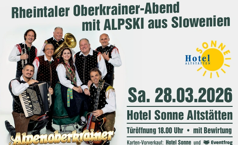 Rheintaler Oberkrainer-Abend mit ALPSKI aus Slowenien Eventsaal Altstätten, Kugelgasse 8, 9450 Altstätten Tickets