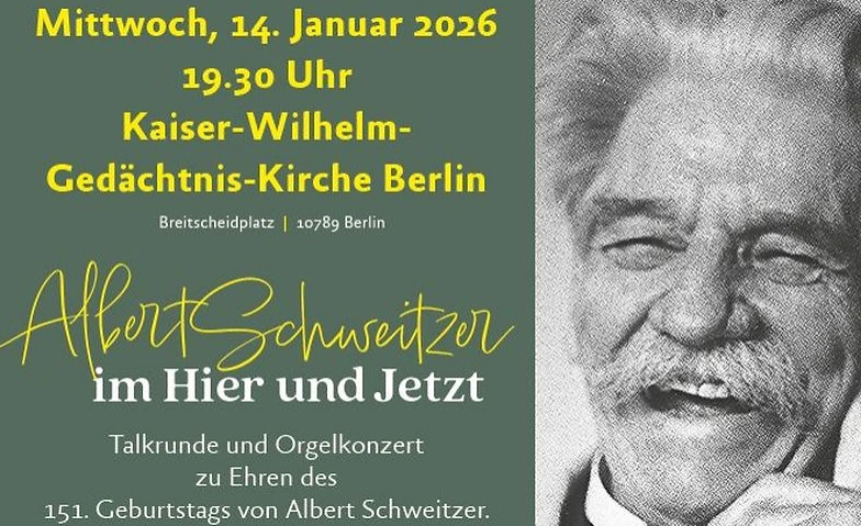 „Albert Schweitzer im Hier und Jetzt“ - Gedenkveranstaltung Kaiser-Wilhelm-Gedächtniskirche, Breitscheidplatz, 10789 Berlin Tickets