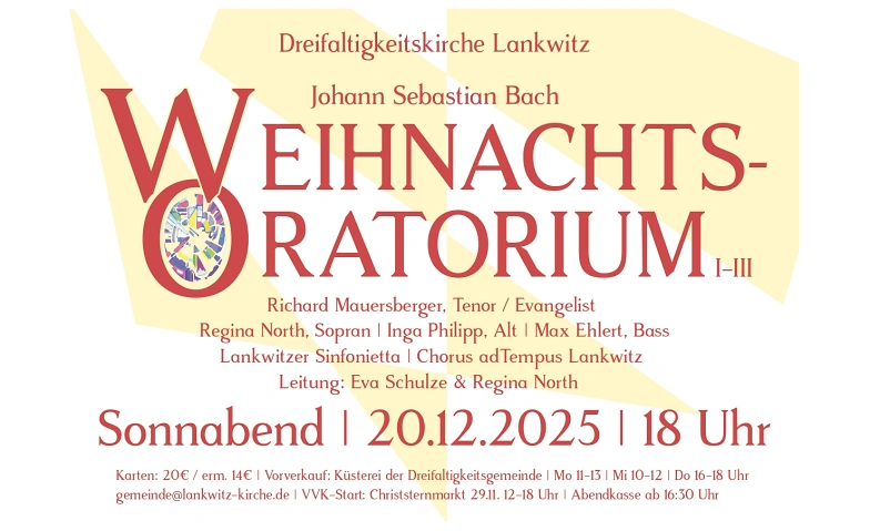 Bach: Weihnachtsoratorium I-III Dreifaltigkeitskirche Lankwitz, Gallwitzallee 4-6, 12249 Berlin Tickets