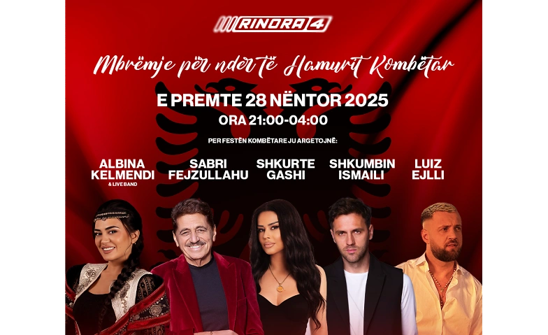 Të premten, më 28 nëntor 2025, në skenën legjendare të Rinora4, do të zhvillohet festa më e bukur e vitit – me artistë të mëdhenj, atmosferë të jashtëzakonshme dhe muzikë që bashkon zemrat shqiptare!
