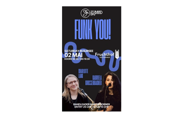 Mit von der Partie ist die Multiinstrumentalistin, Komponistin und Improvisatoren Charlotte Lang, musizierend im Swiss Jazz Orchestra, dem Basel Jazz Orchestra sowie ihrer eigenen Band, der Charlotte Lang Group u.v.a.m. Sie wird mit der Funkyou Bigband als Alt- und Baritonsaxophonistin in neue musikalische Sphären vordringen: Zum einen wird im Mai 2026 der satte und groovende Klangkörper der Funkyou Bigband um ihre klanglich vielseitige und weltoffene Jazzsprache ergänzt. Zum anderen werden einige von Langs Kompositionen eigens für die Konzerte in Luzern und Sursee arrangiert und aufgeführt.