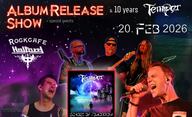 On Friday, February 20, 2026, we're going to rock out at Berlin's coolest rock bar (in our opinion), the Rockcafe Halford. We're not only celebrating our new album “Echoes of Tomorrow,” but also 10 years of Temper. Of course, we've come up with something special for the occasion and you can look forward to a very special concert evening with Temper to listen to, get in touch, and celebrate together.
