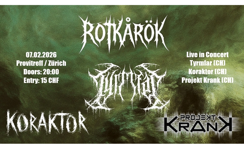 Sei dabei, wenn Koraktor zusammen mit Tyrmfar und Projekt Krank den Sihlquai am 7. Februar 2026 zum beben bringen.