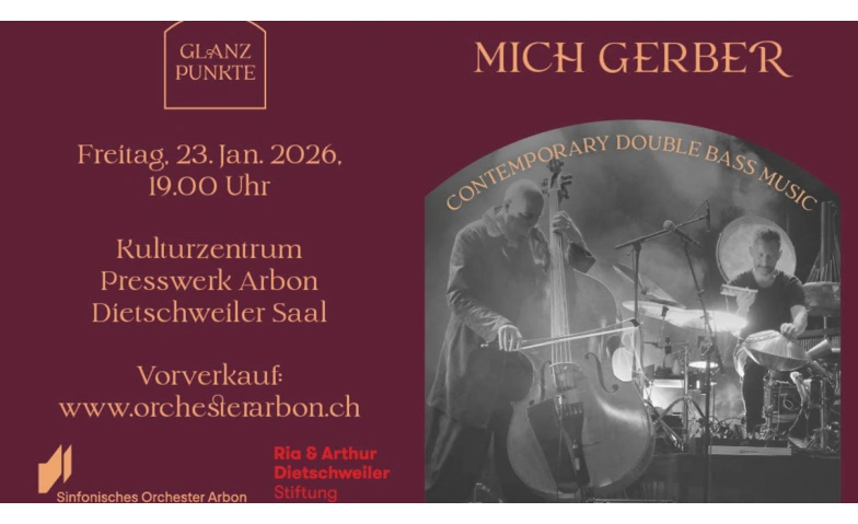 Mich Gerber und sein Kontrabass stehen für moderne Instrumentalmusik, die sofort Bilder im Kopf entstehen lässt: weite Horizonte, stille Landschaften und Momente voller Sehnsucht. Seine Musik hat etwas Filmisches – sie ist atmosphärisch, warm und gleichzeitig geheimnisvoll. Charakteristisch sind die dunklen, schwebenden Klangflächen, über denen melodische Linien auftauchen wie Erinnerungen, die langsam wiederkommen.