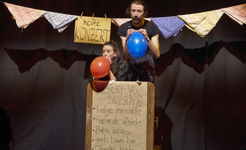 „Ratz & Flitz wennd öppis fiire“ ist Musiktheater entlang einer undogmatischen und lustvollen Erneuerung der Schweizer Volksmusik. Die beiden etwas clownesken Figuren bereiten freudig ein Fest