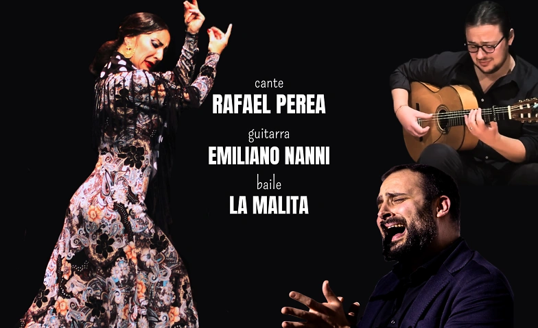 Traditionelle Flamenco-Show mit Rafael Perea, einem hochtalentierten jungen Künstler des Flamenco-Gesangs (Cante Flamenco); Emiliano Nanni an der Gitarre, ein Musiker mit großer melodischer Sensibilität und exzellenter technischer Ausbildung; sowie „La Malita“ im Tanz, eine bedeutende Figur der italienisch-schweizerischen Flamenco-Szene und erste Preisträgerin des INTERNATIONALEN FLAMENCO-TANZWETTBEWERBS STADT TURIN 2013.