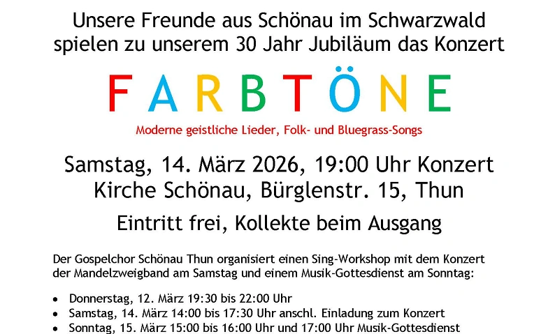 Konzert FARBTÖNE Kirche Schönau, Bürglenstrasse 16, 3600 Thun Tickets
