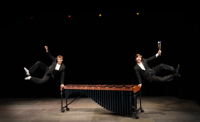 Das Publikum kann sich eine Gigue von Bach oder „One Study“ von John Psathas mit Stepptanz vorstellen. Während die Schlägel des Marimba-Künstlers Manuel Leuenberger über die Holztastatur tanzen, hinterlassen die Steppschuhe von Daniel Borak rhythmische Schläge auf der Tanzfläche: Das ist „Wooden Impact“, das neue Schweizer Duo, das sein frisches Material auf die Weltbühnen bringen will.