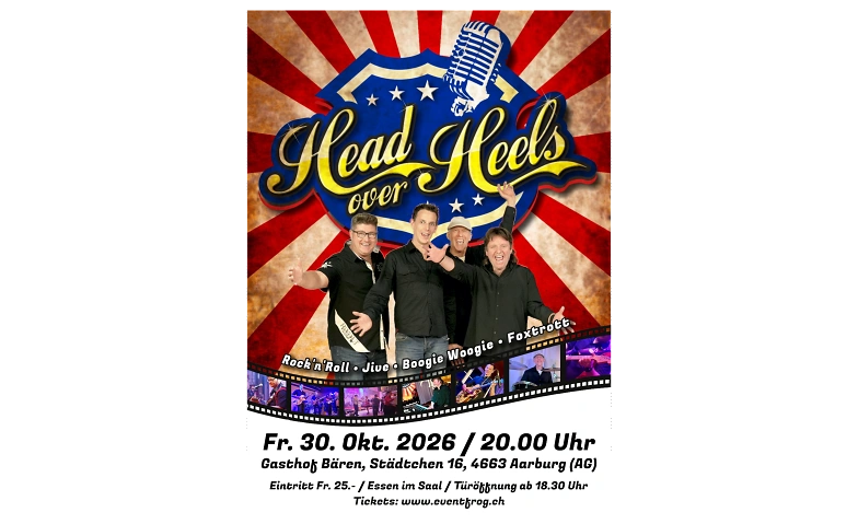 Head Over Heels bringen Boogie Woogie, Jive, Fox und Rock’n’Roll live auf die Bühne — Musik, die in die Beine geht und genauso gut einfach genossen werden kann.