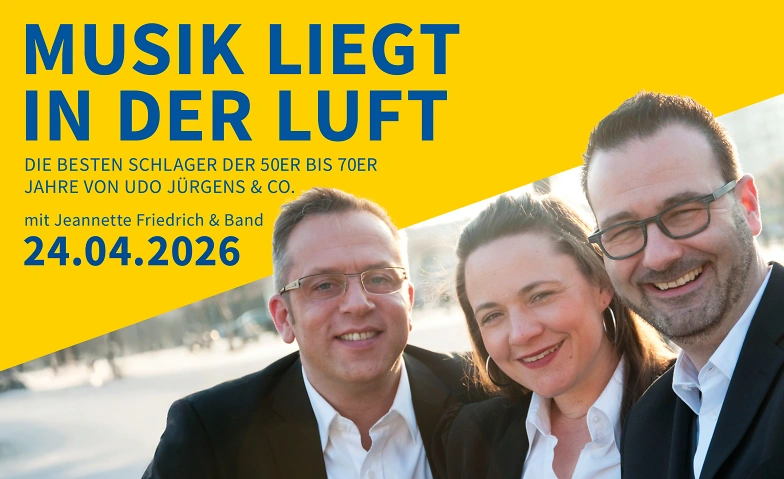 Wir tauchen ein in die goldene Ära des Schlagers und lassen die unvergesslichen Hits von Größen wie Caterina Valente, Peter Alexander und Udo Jürgens neu aufleben – frisch, energiegeladen und mit viel Herz auf die Bühne gebracht von Jeannette Friedrich & Band.
