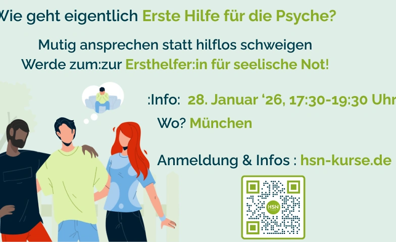Das Schulungsprogramm des Projektes “Helfen in seelischer Not” vermittelt dem:der Ersthelfer:in, durch eine effektive und zielorientierte Handlungskette: „Hinschauen – Sprechen – Netzwerken“ (HSN), mehr Sicherheit und Selbstvertrauen im Umgang mit Menschen in psychischer Not. Ein praxisnaher Austausch sowie erfahrungsorientierte Übungselemente unterstützen zudem die Erarbeitung konkreter Hilfsangebote gegenüber der betroffenen Person.