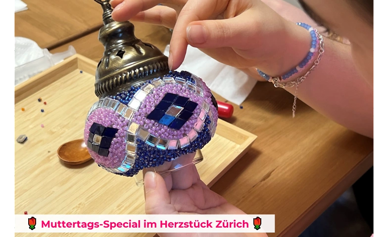 «Danke Mami» Feiere den Muttertag auf eine ganz besondere Art! In unserem gemütlichen Herzstück‑Atelier erwartet dich ein liebevoll gestalteter Mosaik‑Workshop. Gestalte deine eigene Mosaik-Lampe oder ein Mosaik-Windlicht. Ideal als Geschenk oder als gemeinsames Erlebnis mit deiner Mutter.