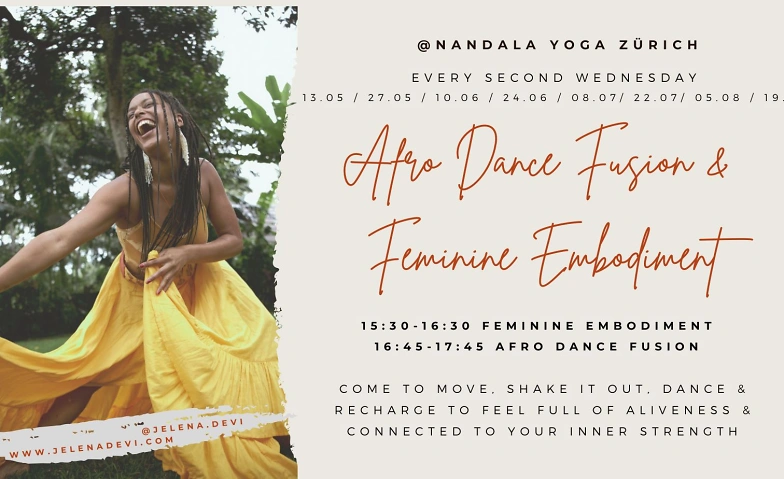 Jeden zweiten Mittwoch bietet Jelena im Nandala Yoga Studio (3' zu Fuss vom Bahnhof Zürich) eine Stunde zu Feminine Embodiemnt & auch Afro Dance Fusion an.