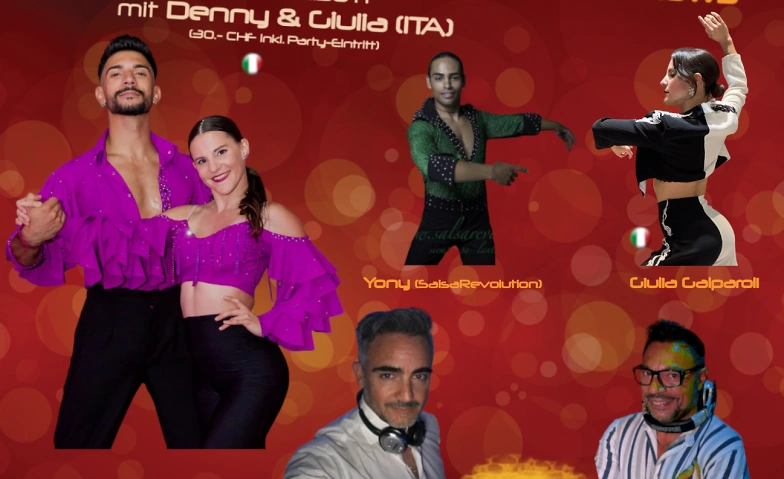 Lerne neue Salsa Figuren mit Denny Imperial & Giulia Galparoli (ITA) und tanze diese gleich anschliessend an der Fiesta Pasión ab 21:30 Uhr mit 2 grossen Floors (u.a. mit Salsa Floor by DJ Max mi Vida und DJ Pietro)!