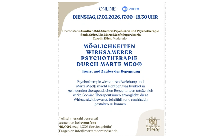 Möglichkeiten wirksamerer Psychotherapie durch Marte Meo Online event Tickets