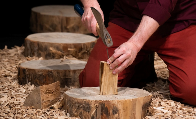 für alle ab 2 Jahren: Es rieselt, es knackt, es klingt auf der Bühne. Zwischen Spänen und Splittern erwachen Wesen, die sich zu rhythmischen Klängen in einer Welt aus Holz bewegen.