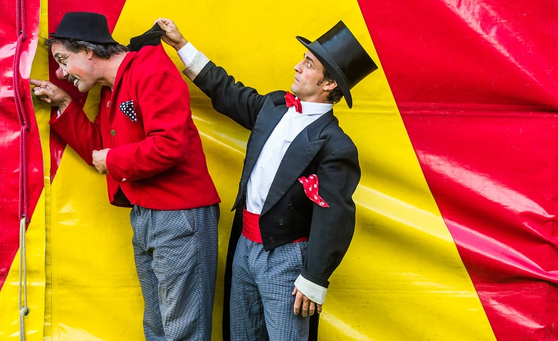 Zauberei und Jonglage, Slapstick und Wortspielereien – Viel Witz und Spielfreude von zwei Clowns, die menschlicher nicht sein könnten. Clown Pepe und Tommy heissen dich im Kunterbunt-Programm willkommen! Lache mit ihnen über die humorvolle Kunst des Scheiterns!