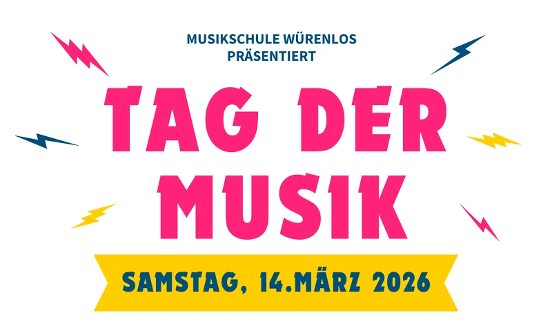 Am Samstag, 14. März 2026, lädt die Musikschule Würenlos herzlich zum neuen „Tag der Musik“ ein. Ein abwechslungsreiches Programm bietet Kindern, Eltern und Musikinteressierten die Möglichkeit, Musik hautnah zu erleben, Instrumente kennenzulernen und erste Kontakte mit den Musiklehrpersonen zu knüpfen.