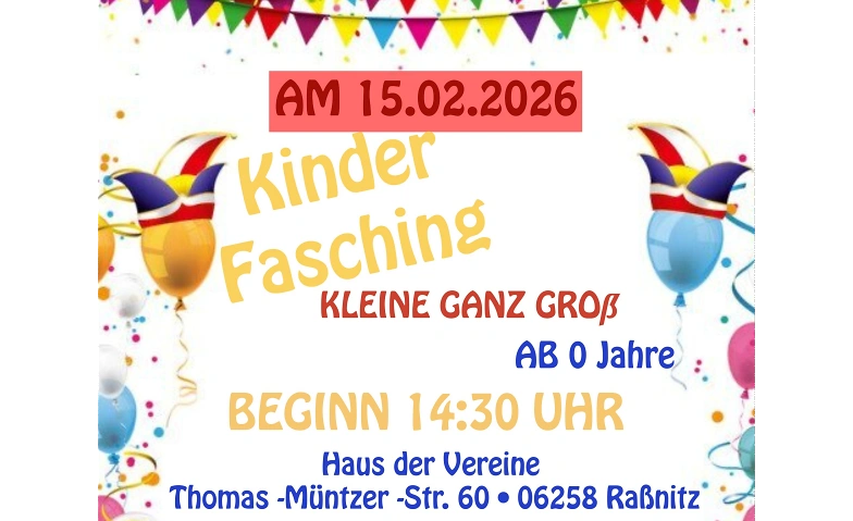 Faschingsdisco "KLEINE GANZ GROß" Vereinshaus, Thomas-Müntzer-Straße 60, 06258 Schkopau Tickets