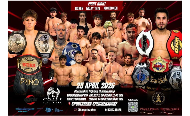 Am 25.04.2026 feiert mit der Oberfranken Fighting Championship (OFC) eine neue, hochklassige Kampfsportveranstaltung ihre große Premiere. Fans von K1, Muay Thai und Boxen erwartet ein mitreißender Kampfsporttag – von ambitioniertem Nachwuchs bis hin zu internationalen Titelkämpfen.