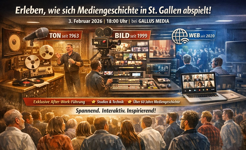 Tauchen Sie ein in die bewegte Geschichte von GALLUS MEDIA – vom analogen Tonstudio bis zur interaktiven Webkonferenz-Plattform. Auf unserer exklusiven After-Work-Führung erleben Sie hautnah, wie sich Technik, Kreativität und Medienproduktion seit 1963 stetig weiterentwickelt haben.