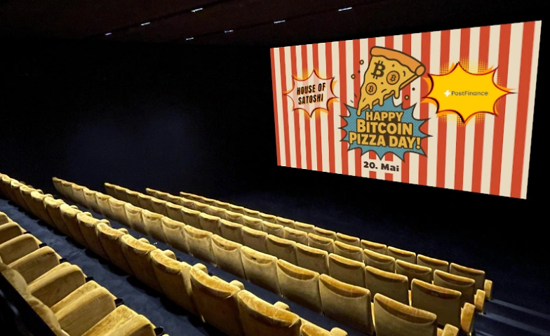House of Satoshi und PostFinance feiern gemeinsam den Bitcoin Pizza Day – zwei Tage früher als der Kalender es vorschreibt, dafür mit einem einzigartigen Live-Podcast im Kino. Mit Popcorn in der Hand und offenen Fragen im Kopf nehmen wir euch mit auf eine Reise durch die Welt der Bitcoin & Krypto-Anlagen.