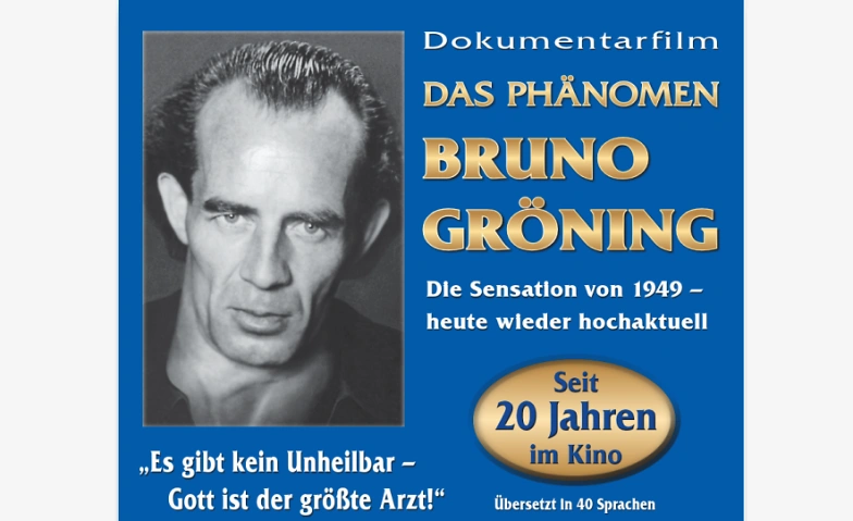 Der Dokumentarfilm „Das Phänomen Bruno Gröning – Auf den Spuren des Wunderheilers“ zeichnet die dramatischen Ereignisse jener Zeit nach: Original Film- und Tondokumente, Archivmaterial, über 50 Zeitzeugen-Interviews, dazu