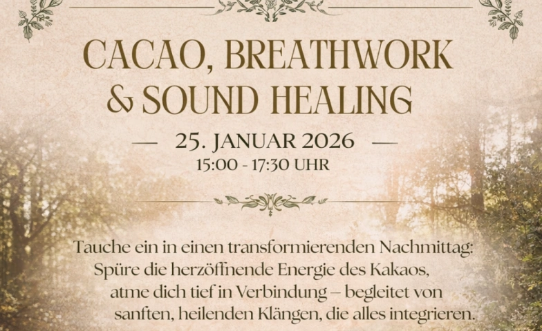 Ein kraftvoller Nachmittag der Heilung, Verbindung und inneren Tiefe.Wir beginnen mit einer herzöffnenden Kakao-Zeremonie, um dich sanft bei dir selbst ankommen zu lassen. Anschließend begleitet dich Lilli (ReMe) durch ein intensive Conscious Connected Breathwork, in dem du tief in deinen Körper und dein Unterbewusstsein eintauchst. Im Anschluss gleitest du in ein wohltuendes Soundbath, welches dich entspannt und dir dabei hilft zu integrieren.Zum Abschluss halten wir Raum für einen freiwilligen Sharing Circle.