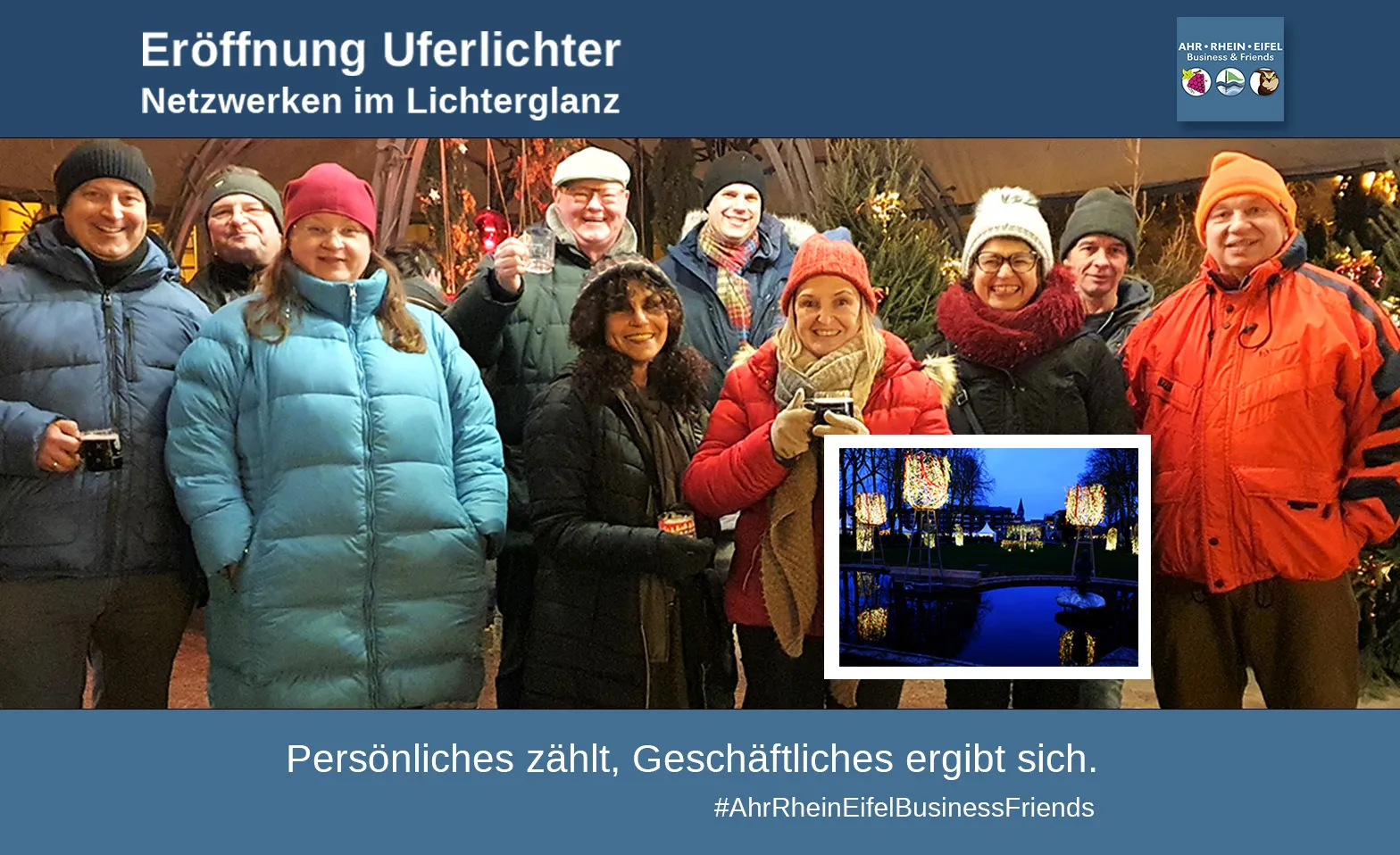 Ahr-Rhein-Eifel Business & Friends: Wir vernetzen Unternehmer, Selbständige & Angestellte – mit Besichtigungen, Vorträgen und Networking. Und dies seit 2007. Neue Gesichter sind immer willkommen!
