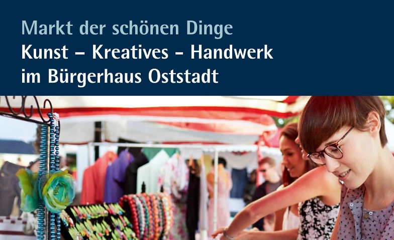 Du liebst kunstvolle Handwerkskunst, einzigartiges Design und faire Preise direkt vom Hersteller? Dann komm zum Markt der schönen Dinge im Bürgerhaus Oststadt, denn dort erwarten dich mehr als 50 Ausstellerinnen und Aussteller mit regionalem Bezug – von Schmuck über Keramik, Textilkunst, Holz- und Metallarbeiten bis hin zu Papeterie und kleinen Überraschungen. In einer entspannten Atmosphäre kannst du stöbern, anprobieren, anfassen und direkt mit den Künstlerinnen und Künstlern ins Gespräch kommen.