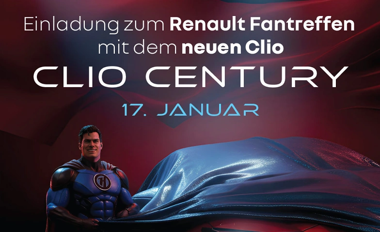 Wir feiern die große Clio 6 Premiere mit einem umfangreichen Renault Treffen für Groß und Klein! Nur am 17. Januar 2026. Mit Rahmenprogramm, Cliomeile, frischen Waffeln, Superhelden-Besuch, Getränken, Musikbar, großem Glücksrad Gewinnspiel mit Amazon Gutscheinen, Tageskaufprämien, Probefahrten uvm. – seid dabei!