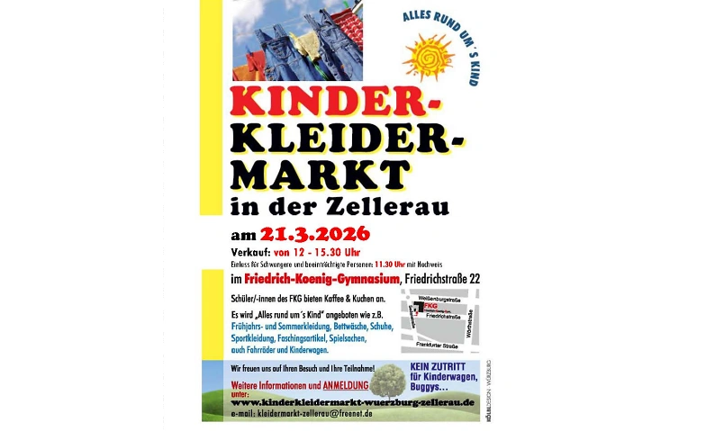 Kinderkleider und Spielzeugmarkt am FKG Würzburg-Zellerau Friedrich-Koenig-Gymnasium FKG, Friedrichstraße 22, 97082 Würzburg Tickets