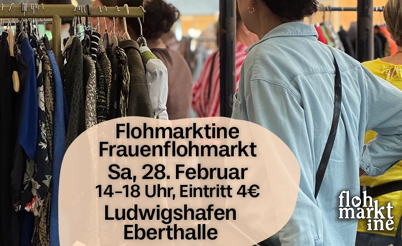 Samstag, den 28. Februar in Ludwigshafen!🫶✨ Flohmarktine Frauenflohmarkt, das nachhaltige Shoppingevent in der Eberthalle in Ludwigshafen!🛍️🌿 Du liebst Kleidung, Vintage & Accessoires? Bei uns gibt es alles, was dein Frauenherz begehrt!🫶