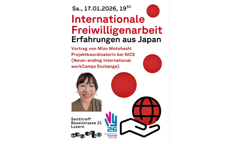 Zum internationalen Jahr der Freiwilligen der UNO blicken wir auf ein Beispiel grenzüberschreitenden Engagements. Als Steve Jobs das erste iPhone vorstellte, sagte er, dass ein hybrides Gerät, das drei Elemente vereint – Telefon, iPod und Internet – die Welt verändern würde. Auf ähnliche Weise basiert die Arbeit von Mizu Motohashi auf der Überzeugung, dass die Verbindung von internationalem Austausch, Freiwilligenarbeit und gemeinschaftlichem Zusammenleben zu einer grenzüberschreitenden Aktivität führt, die zum Schutz des Weltfriedens beitragen kann. Mizu Motohashi ist engagiert bei der japanischen NGO NICE (Never-ending International workCamps Exchange), die eng mit dem Schweizer Ableger von Service Civil International zusammenarbeitet. Sie wird uns an diesem Abend darlegen, wie dieses internationale Netzwerk funktioniert, wie seine Aktivitäten getragen werden und wie sie selbst als Projektkoordinatorin für internationale Freiwilligenprojekte in diesem Rahmen arbeitet.