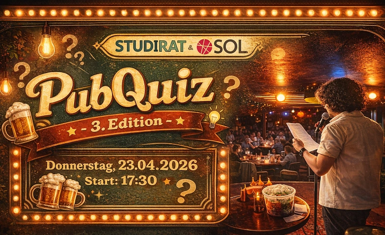 Das StudiRat & Sol laden euch am Donnerstag, 23. April 2026, herzlich zur PubQuiz 3. Edition ein.