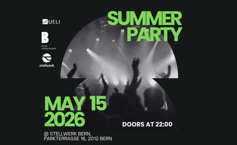 On May 15, 2026, the summer party of the student association BFH Business School will take place at Stellwerk Bern, right by the train station/Grosse Schanze!
