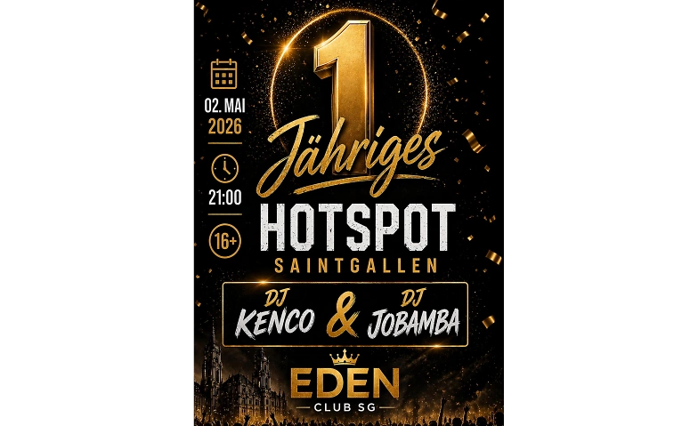 1 Jähriges Hotspot Eden Club St. Gallen, Bahnhofstrasse 10, 9000 St. Gallen Tickets