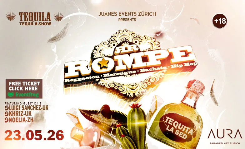 Am Samstag, den 23. Mai, kehrt die legendäre ROMPE-Party ins AURA Club zurück, um deinen Durst zu stillen… mit purem Flow und jeder Menge Tequila Boom!