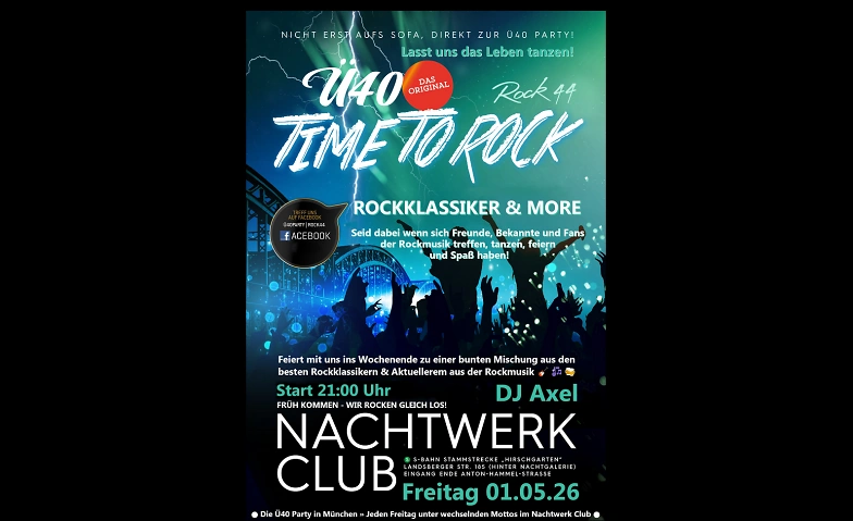 ► Location: Ü40-Party von Rock44 im Nachtwerk Club München, Landsberger Str. 185, 80687 München 📌