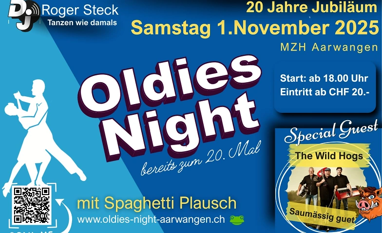 Die legendäre Oldies Night feiert ihr 20. Jubiläum! Was einst in der kleinen Aula in Aarwangen begann, hat sich längst zu einem Kult-Event entwickelt. Seit 2019 tanzen wir in der grosszügigen Mehrzweckhalle – mit viel Platz für alle Gäste, die die Nacht durchtanzen wollen.