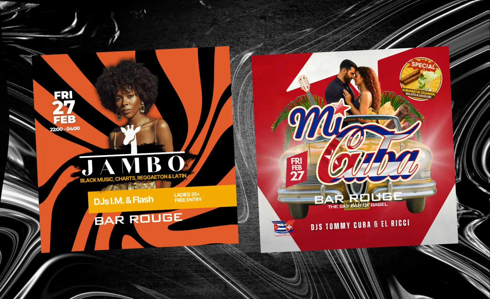 Bereit für eine Nacht voller Energie, Beats und guter Laune? Am Freitag, den 27. Februar wird’s heiss, wenn die DJs I.M und Flash die CD Player drehen und euch mit den besten Hits aus Black Music, Charts, Reggaeton & Latin einheizen.
